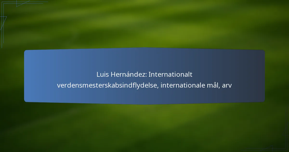 Luis Hernández’s arv i fodbold er præget af hans betydelige bidrag til sporten, især under internationale konkurrencer. Hans indflydelse strækker sig ud over hans spillerkarriere og påvirker ungdomsspillere samt former træningsmetoder.